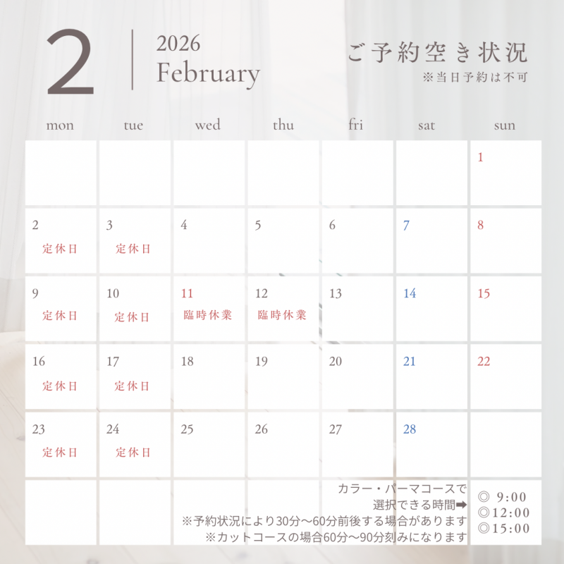 ◎ご希望の日時を第2~3候補(日にちとご来店可能な時間帯→全日OK、午前OK午後NGなど)